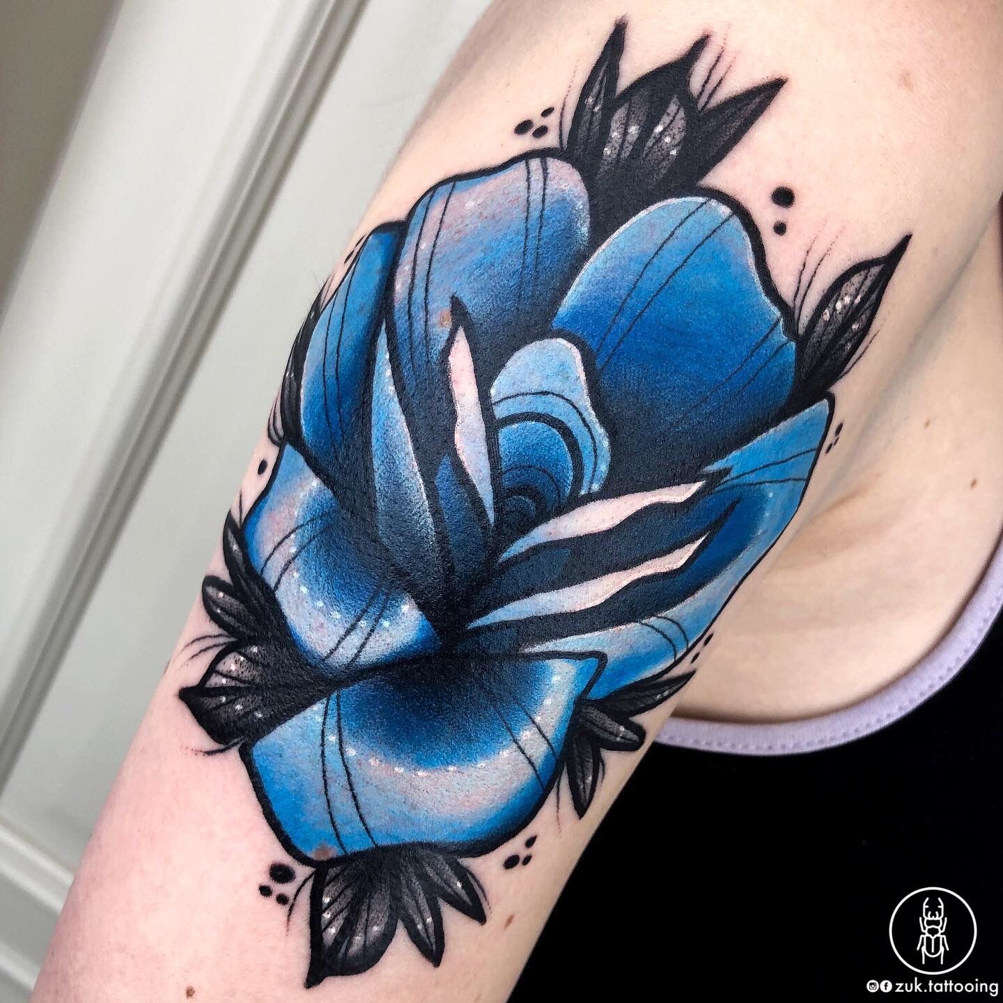 Ja właściwie nawet nie wiem, czy mam jakiś styl. Tatuuje trzy lata, co oznacza, że jestem w fazie intensywnego rozwoju i tak naprawdę szukam siebie. Można zauważyć, że romansuje sobie ze stylem neotradycyjnym, tradycyjnym i czasem geometrycznymi motywami. Ja jestem człowiekiem bardzo ścisłym w tym względzie i lubię, gdy istnieją zasady, których wypadałoby się trzymać, to mi daje poczucie komfortu. Kocham kolor, bo kolor jest bardzo wymagający i zawsze jest wyzwaniem, ratuje mnie od jakiejkolwiek monotonii. Ale ja też jestem takim tatuatorem, który po prostu lubi tatuować, więc jeśli klient umrze ze szczęścia posiadając znak nieskończoności, to dla mnie też spoko.