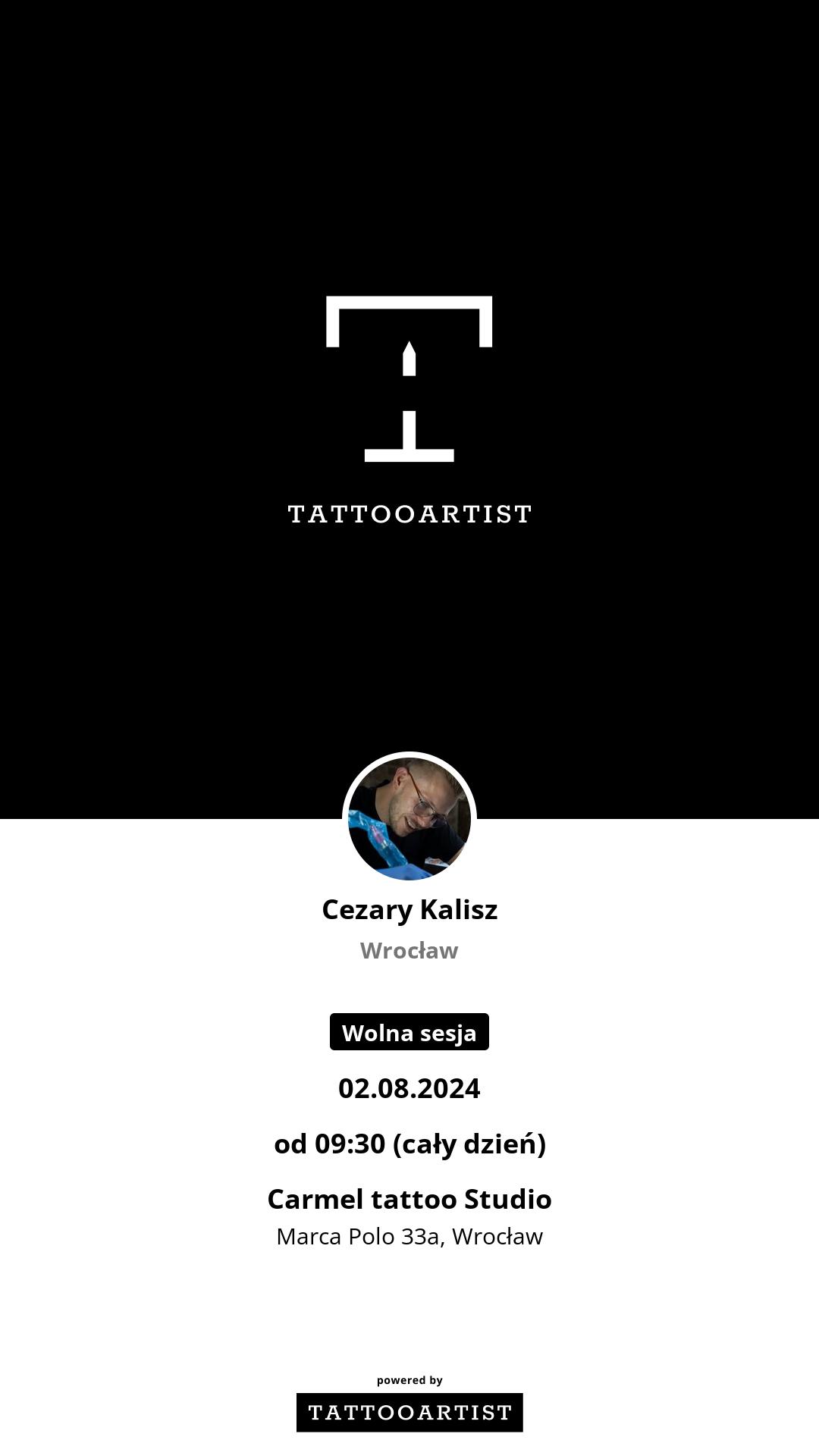 Tatuuje we wrocławskim Carmel Tattoo Studio