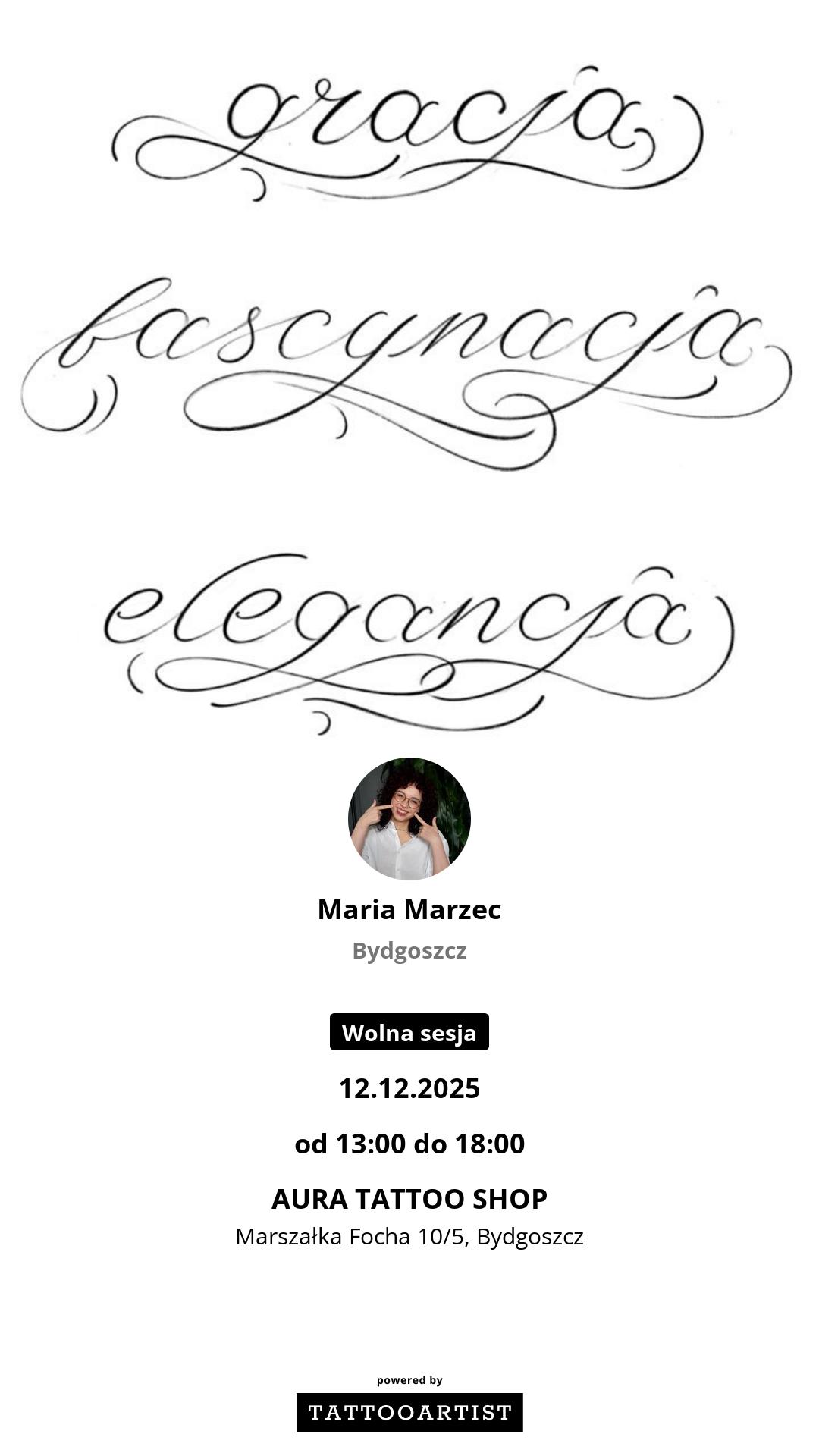 Styl tatuażu: Black & Grey / Dotwork / Graficzny / Sketch / Kaligrafia / Lettering / Line work / Fineline / Outline / Minimalizm